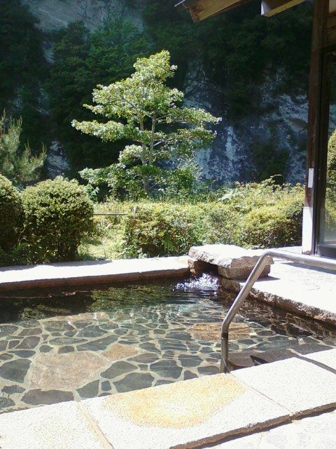 君津市の山中、ロマンの森共和国というレジャー施設の中にある日帰り温泉白壁(はくへき)の湯。名前は下の写真では判り辛いが、川向こうの断崖から。季節によって開館時間は異なり、この日は12:00からの開館で、12:30位に到着。ちょうど先客が上がるトコロで、以降貸しきり…。ナトリウム泉の「浮く」感じを堪能しながら、強い直射日光の下、夏を感じる。あとは高い料金(¥800)が気になるところなんだけど、周辺の温泉は千円以上が「ザラ」なんで、まぁ、範囲内なのかなぁ。同じ君津市内の海側に「スゴイ」温泉があるらしい(¥200!)のだが、ソコは銭湯で、ドライヤーが無いらしいので今日はパス。