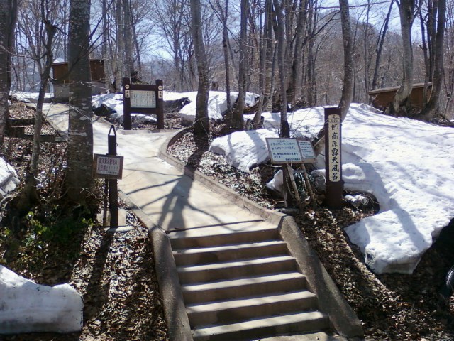 昨年、得意の「朝駆け」をかけたら、利用時間外だった(笑/10:00~21:00)。別に露天風呂だから強行は出来たんだけど、そこは「表向き」イイ人なんで…、今回は再チャレンジ。ココ小谷(オタニ)村の山間は、5月間近かといえど残雪が多い。そんな絶景の中で一風呂。が、「熱い…」。雪の上をふいてくる冷たい風に怯みつつ、お湯につかると、3分ともたない。半身浴とを数回繰り返して、10分強で退散。なんか慌しいなぁ。