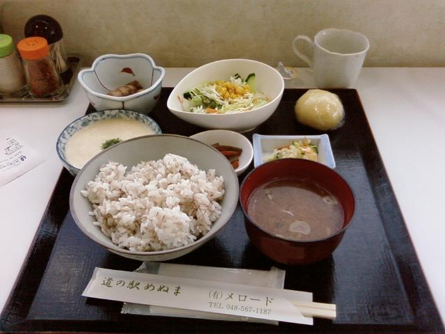 エンジンを載せ替えたSRXの試運転に、片道30キロ程の「道の駅めぬま」に向かう。ついでの目的として、以前から気になっていた定食を食べたかった…。しっかし、その価格¥850が「どうなんだろ?」って終始頭から離れない結果に。なんか高かったような…、という記憶は当たっていて入り口のメニュー見た際に思わず「帰ろうかー」。小さく「ドリンクバー付き」の文字を見て、せっかくだから試食すっか的な。極小のコーヒーカップを支払いの際に渡され、セルフのコーヒー飲んで待っていると、ソレが運ばれて来た。まぁ、見た目には皿数も多いんだけど、「御膳」は無いだろっ。