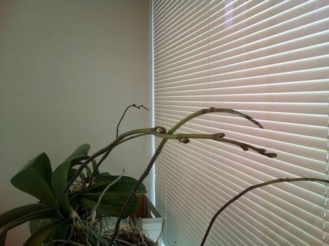 つぼみが付いた 年末に花径が出始めたファレノにつぼみが付きだした。ココから膨らんで開花まで何日を要するのか? 結局、「ダメ元」の賃上げ交渉は、予想通りダメだったので、今月中に白い花が見られるのか微妙なところだ。ちなみに、支柱刺して固定しないのは、根が張りすぎてて、ブッ刺す度胸が無かったから…。今後、後任さんが水くれするのに難儀しそうだ。 関連記事: 花茎キター! 間に合った… 元・バブリー胡蝶蘭 激安シンビジウム Posted by maasaki View all posts by maasaki