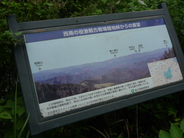 西南の役の際、激戦地になったと伝わる古戦場跡。去年R2で目指した時は、道を間違えていたことが今回判明した。さて、山に戻りつつある遊歩道を登ること5分、石碑と字の消えかかり倒れた木柱。小高い丘みたいなところで、周囲は鬱蒼とした林。チラッと調べたところでは、「激戦」と言う割には戦死者17名。どうやら、薩摩兵の防衛線が長すぎて、戦力が分散。夜、疲弊により寝込んでいたところを襲撃されたとのコト。周囲をキョロキョロして、錆びた薬莢とか無いかと思ったが、木々の葉っぱの量は過去の歴史の一コマを覆い隠すのに十分だ。