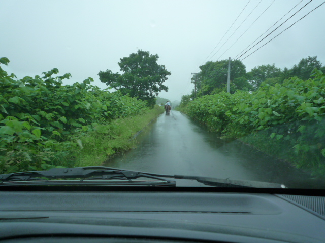 道路交通法的には? なんか…、中国人とかは好きそうだなぁ。 登別の道路上を、5騎の列をなして闊歩していた集団。周囲には「乗馬」をサイドビジネスだか?、観光が本業なのか判断のつかない牧場が点在している。追い抜きに神経を使うぞ…。 関連記事: ♪ウサギ追いし… ♪ウサギ追いし… 再び 不本意 帰路の風景 Posted by maasaki View all posts by maasaki