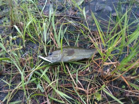この日は風が強く湖面が波立っていたうえ、濁ってもいたのでルアーをナニ使ってよいのか全く分からんままに2時間くらい粘っていたが…、アタリすら感じられず納竿。ムズカシいぞ。