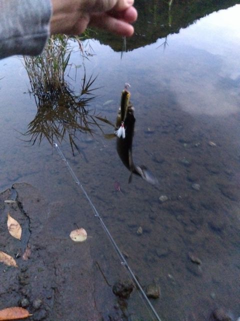 ひと月ぶりに南会津にやって来た。正直この間(かん)、2度ほど別の湖沼で釣っていたのだが、アタリすら得られずに、この場所に戻ってきた。で、ユウマズメに掛ったのがコイツだ。こんなヘンテコな形のルアーを、水面でバシャバシャさせてると食いついてくるブラックバスは、やっぱり変な生体だな。ついでに言うと翌朝も同じところで掛った「小物」は、海用のイワシを模したルアーに食いついてきてた…。