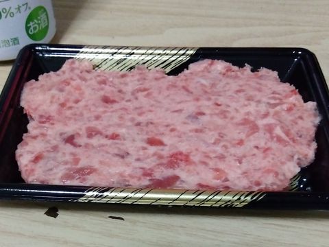 なんか600円位のが半額だったんで、メッケ物と思い込んでいたのだが…、今写真をよく見たら、「入」って文字が微妙に見えているような気がする。まぁ、味の方も「有難く」頂いたのだが、ボヤケていたかもしれない。そもそも、これまで本マグロを食べた記憶が無いので、なんとも言えないのは確かだ。いつもの髭長とは違うな、というあたりが「やっと」の感想かな。