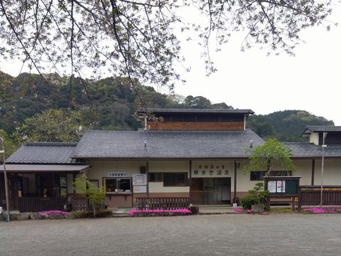 人吉市西方の日帰り温泉。のどかな農村風景に溶け込んだ立地だ。受付で居眠りしていたおじいちゃんを起こして料金400円を支払う。田舎家の玄関先にお邪魔するようにして浴室へ向かうと…、無人、貸し切りだ。と、写真を撮り、服を脱いで浴槽のお湯をかけ湯。んっ! ヌルい。40度くらいのお湯に長湯を強いられるが、それも良い。窓の外には散りかけの八重桜が過ぎ去る春を惜しんでいた。