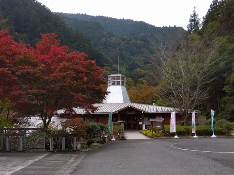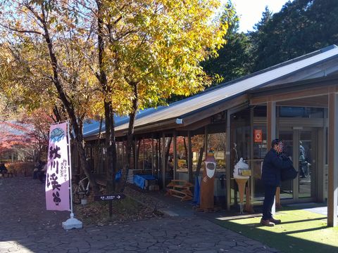 サマーランドの先、3キロ程にある温泉施設。全くの最盛期に訪問してしまった感がある…。平日というのに駐車場はいっぱい。さらに観光バスの団体が到着したタイミングで入館してしまったが、団体客が紅葉目当てなのか?風呂目当てなのかは定かでない(2時間の滞在時間…なんてのが漏れ聞こえてきた)。で、料金1000円(3時間)の温泉だが、泉質はとろとろアルカリ泉という以外に、特に特徴は感じられない。多少隙間のあった内湯につかりながら、イモ洗い状態の露天風呂を窺っていたが、間近のところに真っ赤なモミジが植えてある以外は、ほぼ「杉」の景色に思い入れは乏しく、早々にカラダを洗って湯から上がる。たぶん、余程のオフシーズンでない限り、再来はなさそうだ。10キロほど先の「数馬の湯」の方が何かと良さげに感じた。