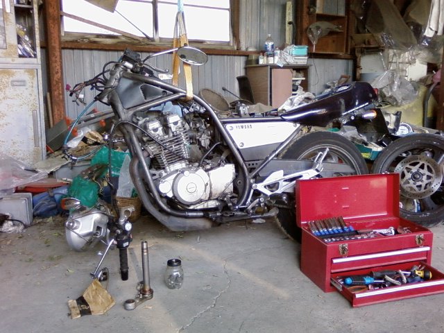 現在、SRXはフロントフォークのオーバーホールの為、こんな状態…。