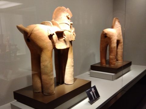 クルマで10分くらい走り、しもつけ風土記の丘資料館に到着。まぁ、そんな近距離に似たような資料館が複数あるのは、歴史資産が濃いのもあるが、先ほどのは栃木市管轄、コチラは下野市という、行政区分の関係だ(ちなみに…、どちらも入館料は無料)。建物に入ると、受付で何処から来たのか都道府県だけを記して申告終了。先に進むと…、ヲヲ!、全然お金がかかっている(笑)。先ずは照明からして明るい。ただし、展示自体は古墳とか埴輪が中心で、国府跡からさらに時代を遡って古墳時代か? デカい馬の埴輪のオシリが気になるなぁ(苦笑)。