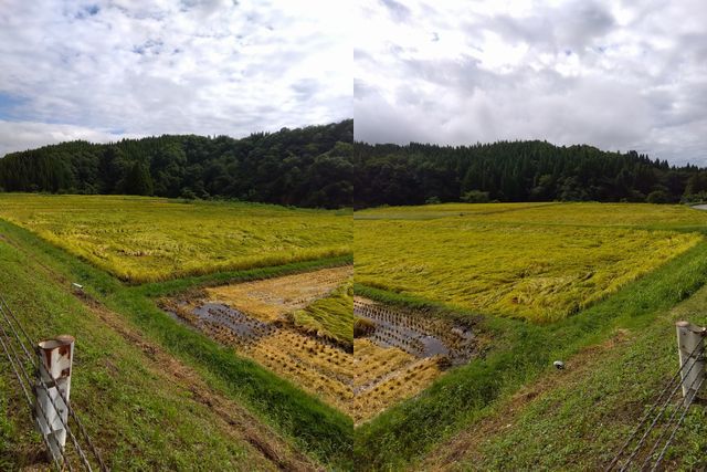新潟県の北部、新発田から関川村へ向かって国道290号線を走っていると、異常な光景が続いていた。たぶん土地柄「コシヒカリ」だと思われるのだが、刈り入れ時にみんなペチャンコな状態(先日の台風が影響?)。すべての田んぼではないが、8割り以上の稲がこんな事態に、普段コメを炊かない生活から、巷の価格上昇には疎いのだが、こんなところにも原因があるのかと思ってしまった。