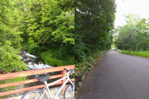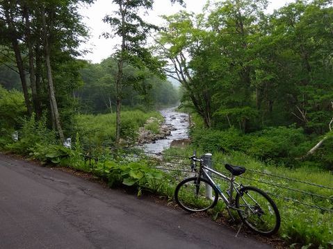 舗装路を走り出すも、予想に反してずっと「下り」。ふとメーターに目を向けると、30キロはゆうに超え、40キロに届きそうな速度のまま5キロ位進んでしまう。下ったというコトは…、帰りは当然登り続けるのが道理で、走り出して数分にて気分が落ち込む(トホホ)。やっと下りが終わり、周囲の緑が濃くなりだしたころ、並行する雑魚川の流れが目に入る。そこから3キロ位、計8キロ位で帰りの疲労を考慮して引き返すことにする(ホントはあと2-3キロ先の秋山郷方面への林道分岐までの予定だった)。結局、往きは20分程度だったのに、戻りは1時間以上かかって終了。汗が引くまでさらに数10分を要した。周囲にはトンボが舞っていて、秋の気配。バイクだとヘルメットにぶつかって、殺トンボを犯すのだが、チャリだとそんなことは無いな。