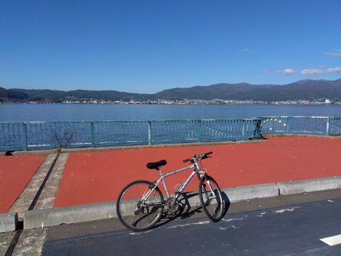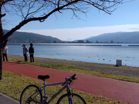 少し前に、テレビで諏訪湖から富士山が見える…という場面を放映していて、確かめに来たらホントに見えた。