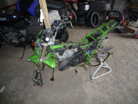 入手したKSRを細部確認。誰が整備してたかワカラんバイクに乗ることなんか、絶対イヤだ(素人整備もどうかと思うが、自分でやったのなら、なんか有っても諦めもつくし…)。早速シェラウドやリアカウルを引っぺがして、イロイロ見てみると、オイルタンクがチャンバーに乗っかってる(笑)。ネジの欠品に気がつかないのか? 手持ちのネジで固定後、キャブレターを引っこ抜いて中を見ると、キレイだ。まぁ、エンジン掛かってたし、調整とアクセルワイヤーのグリスアップで終了。次回はタイヤの交換をするつもり。今日も暖かくて、古タイヤの外しだけはやったのだが、曲がりのバルブを持ってない。12インチの小径ホイールなんで、短いストレートではブレーキディスクが邪魔になりそうだった。