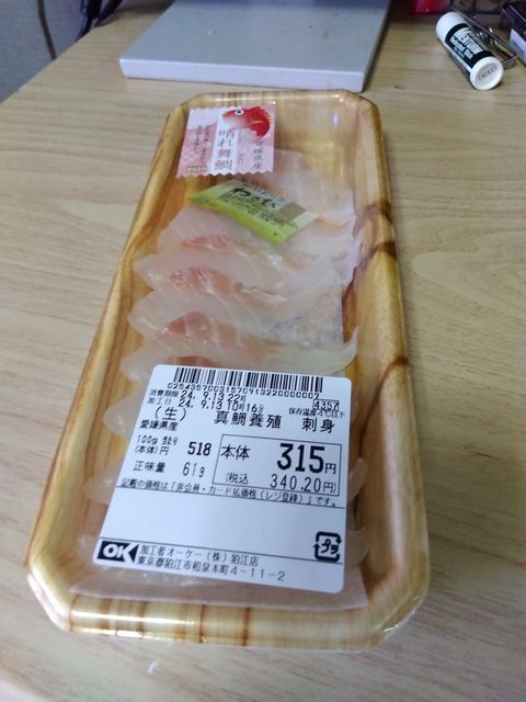 OKで販売されていた「お安いの」。以前サミットでも300円台の養殖鯛の刺身を見かけていたので、結構市場でダブついている感を持っている。そんなコトに関係あるのか?、ネーミングに関して、差別化を意識してからか、狙いすぎ? ひねり過ぎ(苦笑)。お味に関してはソコソコ甘くて、ただの呑兵衛には十分満足。