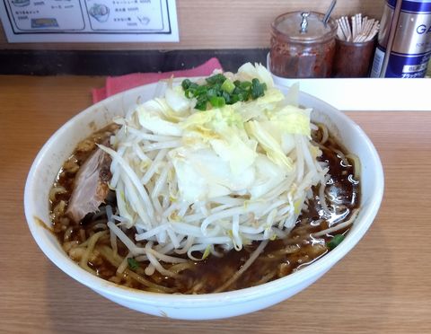 なんと9年ぶり2回目の訪問らしい。前の道は埼玉の実家とロヂャース、都内アジトを結ぶ経路上にあるので、月に2回は通りつつ、横目で混み具合を眺めていた。前回は真夏でつけ麺を食べていたようなので、今回は主力の「二郎系」を食するつもりで開店時間に入店したのだが…、いきなり「醤油・塩・味噌のどの味にしますか?」なんて聞かれてしまい、なんかブレてないかい? 当然醤油を選択後「アブラ・にんにくは?」と来たので「普通で」と回答する。待つこと5分ほどで着丼したのはブレてない。これほどカラダに良くない食べ物なのに、食べると精神的に満足してしまうのはヤバいだろ。さて、コチラのお店の名は何時になったら「諸葛亮」を名乗るのだろうか?