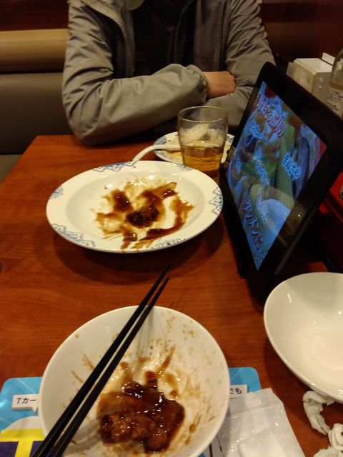 前回と違って、16時過ぎの店内は半分以上席が埋まっている…。とは言っても、大半の席はアルコールの所在までは見えんが、オッサン一人が4人テーブルを占拠しているようで、筆者もその輩に混じってテーブルに着き、タブレットでビールとエビマヨサラダを注文。この前同様、PCのゲームで猫ロボットの到着を待つ。まぁ、次に注文した目的のホイコーローも含めて、皿が小さめなのは確認済み。味がソコソコなので不満はない。で、前回イマイチだった餃子に替わって、さらに注文したのが唐揚げとハイボールのセット(550円)。この組み合わせは良いのだが、一人で5個はチョット多いかな。最後の2つは、ホイコーローの皿に残った、辛いソース付けて、味変して食べてた。サイゼが秋メニューを発表したので、次はサイゼと思われる。