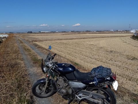SRXの前タイヤを8年ぶり位で交換した。表面にヒビなんかが出始めたので、硬化が進んでいると思われた。しっかし、その位乗ってないコトとも言える…。近頃、クルマが軽バンに代わって、発進加速がなんともトロい為、ストレスが溜まっているのを発散できるのは、手持ちではこのバイクくらいになってしまった(スクーターも発進は速いが、自動車専用道が走れないという制約が…)。で、試運転もかねて筑波山を目指したのだが、天気が下り坂なので、その手前で方向転換。小貝川に沿って南下し、水田、トウモロコシ畑、芝畑(この地域では園芸向けに30センチ四方に切り出して出荷してる)、そして高台の集落…みたいな繰り返しに20キロぐらい付き合って、沿線をのんびり探索した。そんなバイク乗りも楽しい。