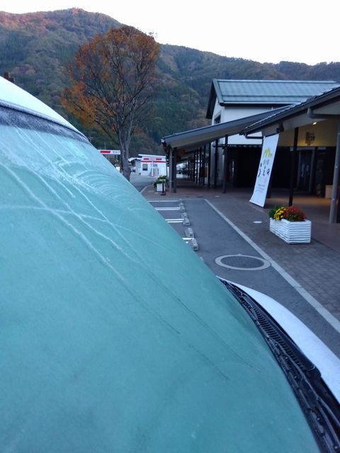 旅人はまだ西の方をウロウロしているようだが、本人は関東に戻ってきている(が、就職活動せず、近場を旅したままらしい…)。今朝方は群馬の山ん中、上野村の道の駅で車内泊したのだが、フロントガラスが凍っていた。この後、間もなく冬季通行止めとなる峠を、2つ越えて諏訪湖へ向かうらしい。