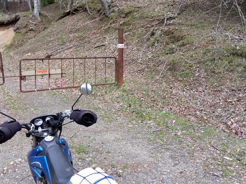 引き返して再度分岐を右方面。道東自動車道の橋下で、白音林道と分岐。大規模林道にはゲートが設置されているのだが、右わきが甘々で、バイク乗り歓迎の証…。ココで筆者の記憶が何故か薄れてしまうのだが、夢の中で5キロ位進んで、分岐がいくつも現れ、有力そうな3本を少し進んでみるも、どの道も「それなり」の頑張りを要する道路状況で、結局どれも選べずに戻って来たような(ムニャムニャ…)。