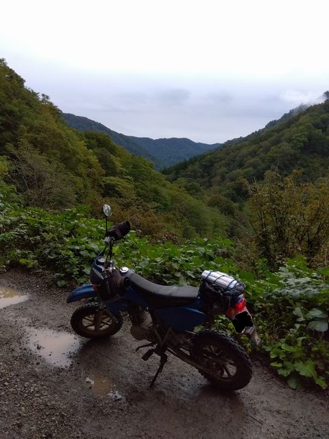 続いては、九頭竜付近の林道和佐谷線。県道174号から2キロ位は舗装路で、ダートに変わって2キロ位から厳しい状態。落下物も多いのだが、ココは泥濘が酷くて意気消沈。雨が降ってない時にだったら頑張れるかも…、な道路状況だった。